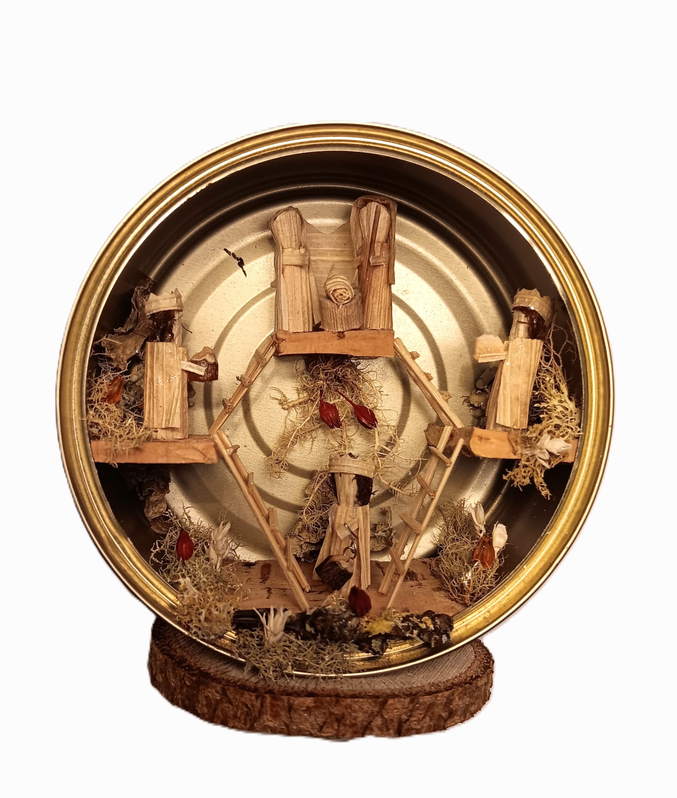 Feito dentro de uma lata de conserva com 8,50cm de diâmetro