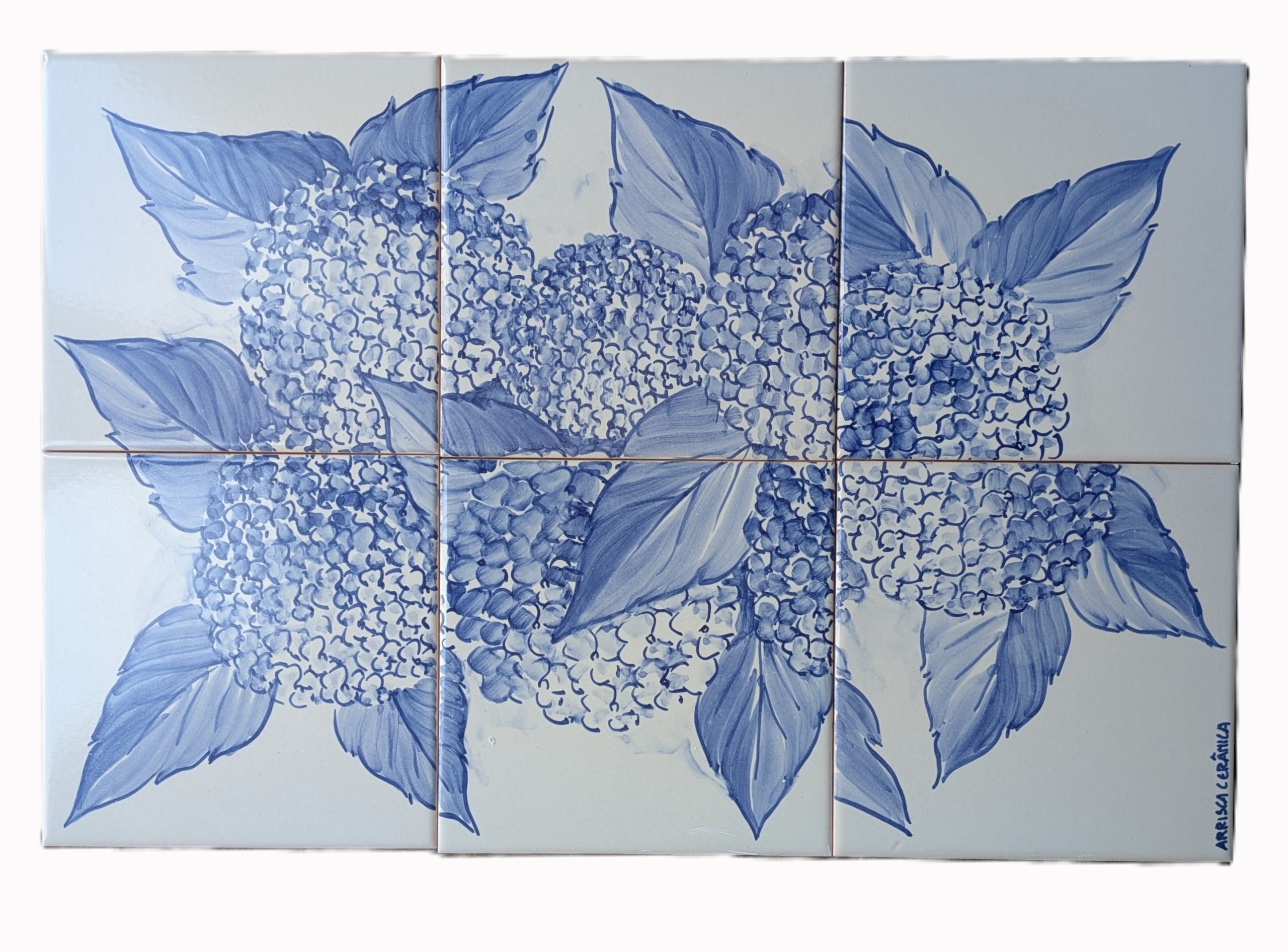 Painel de 6 azulejos, Hortênsias