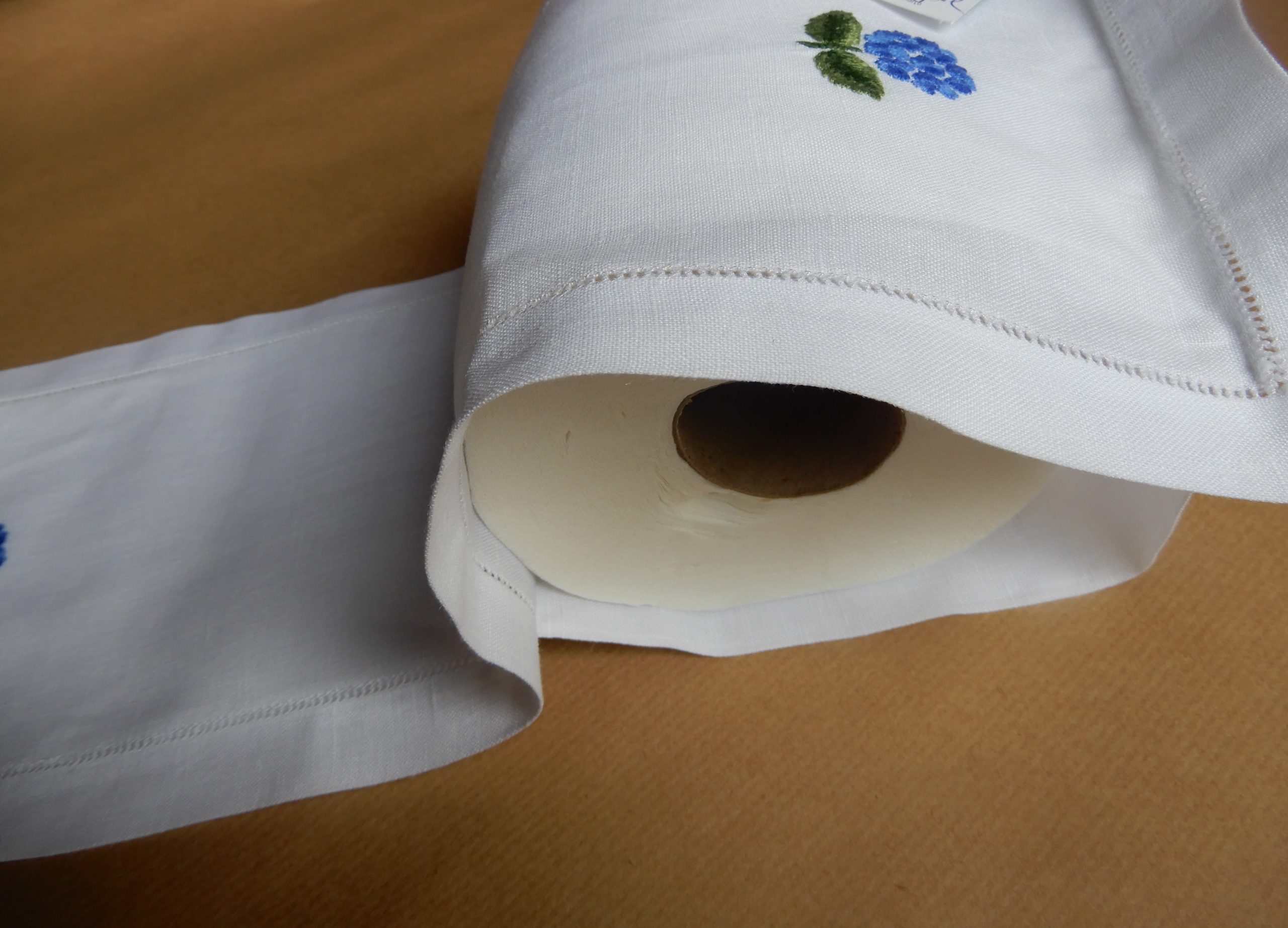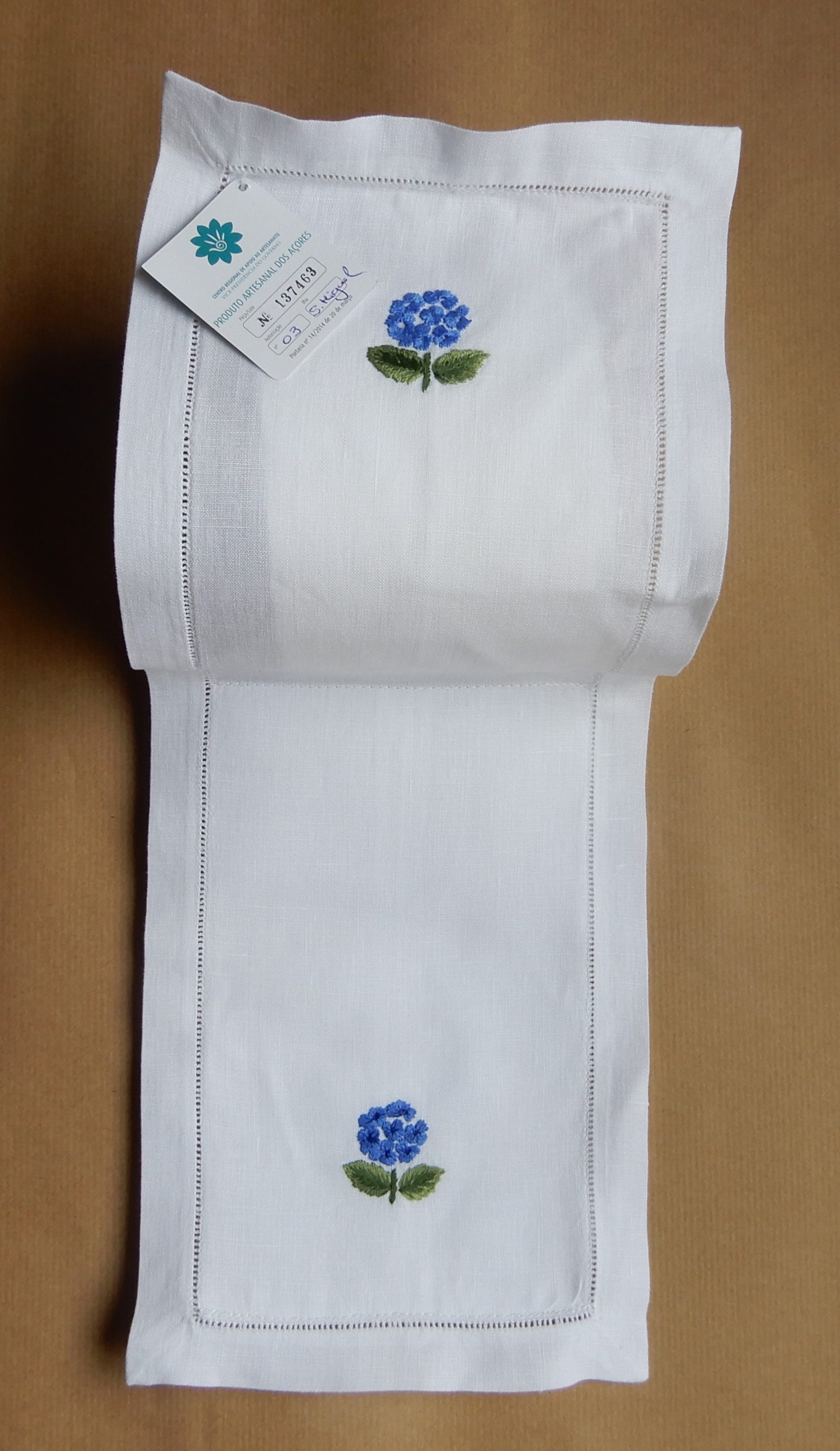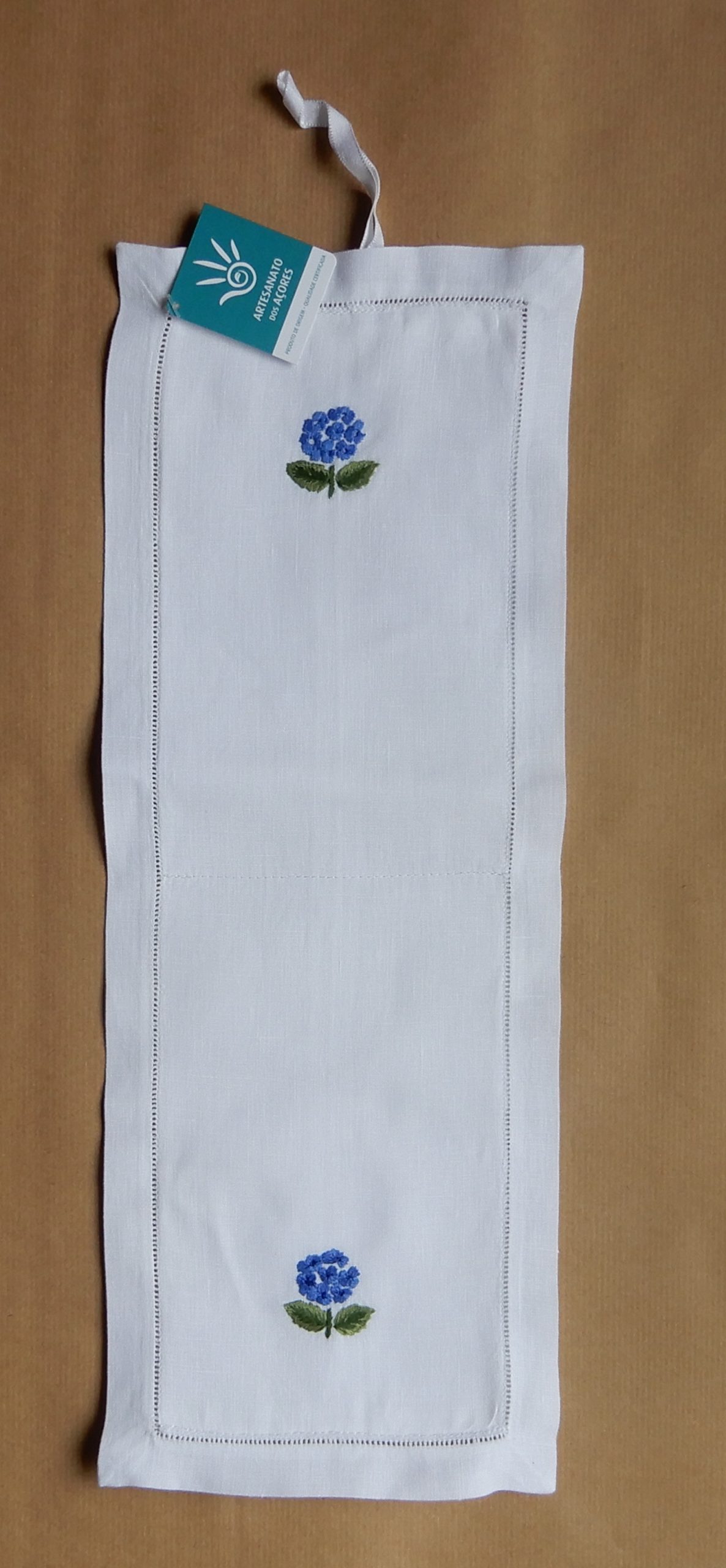 Útil e decorativo! Mede 44,00×16,00 cm Linho branco bordado à mão.